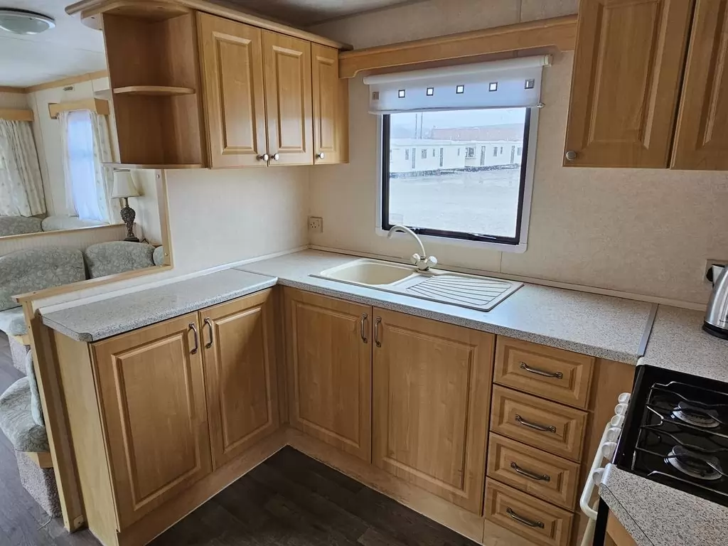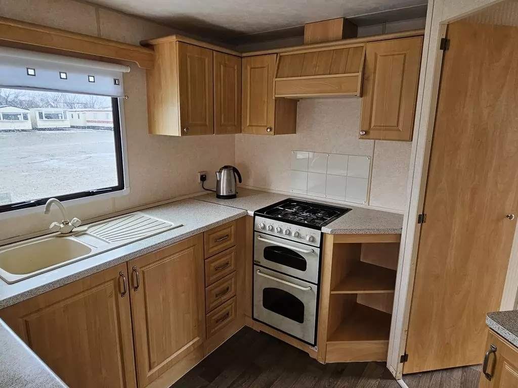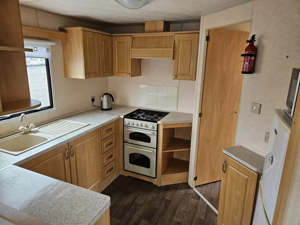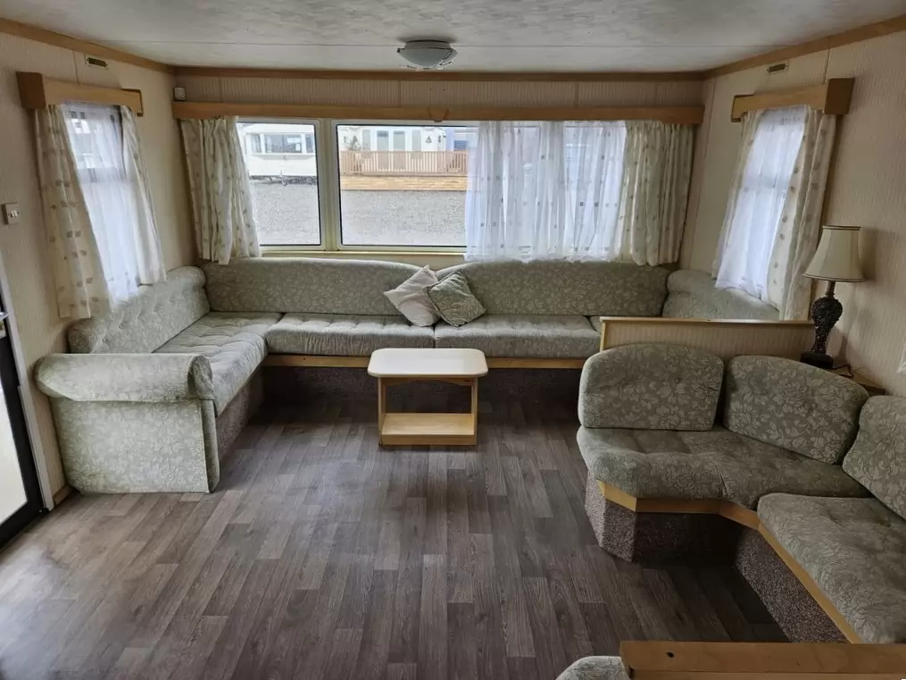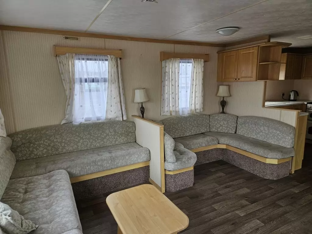 Extra wide, BEAUTIFUL, fully equipped mobile home 11.1 x 3.7m with two entrances, GABLE ROOF, DOUBLE (insulated) WINDOWS AND DOORS - dithermy. Living room (sofa bed), dining area, U-shaped kitchen including appliances, bedroom (double bed), room (2 beds), room (bed), bathroom with shower + toilet. Gas fireplace, gas water heating. Raised ceiling throughout the mobile home!!