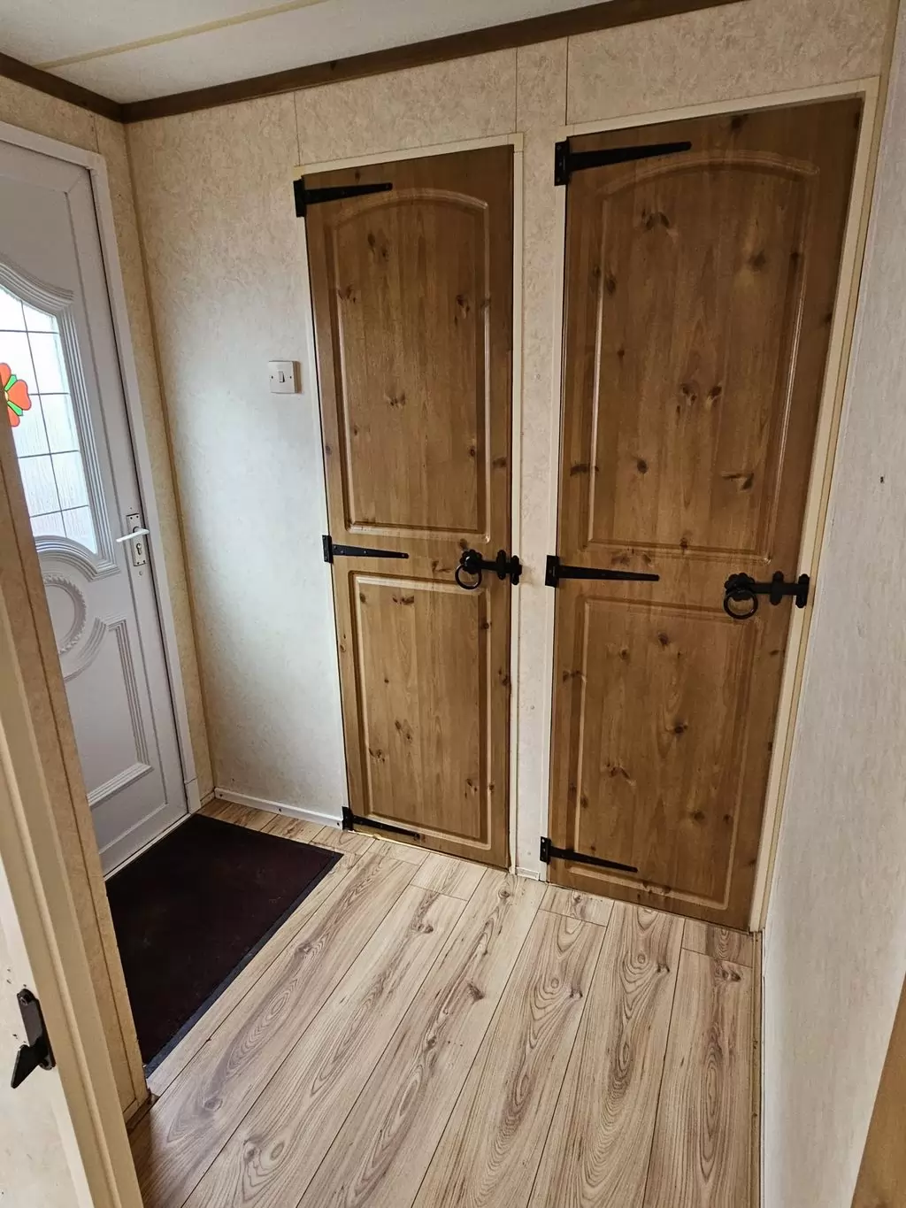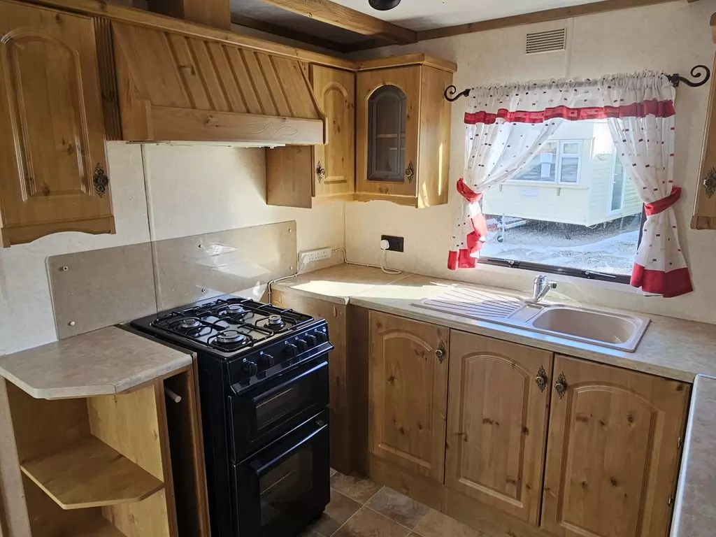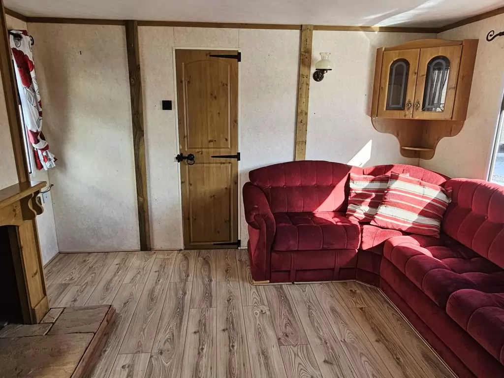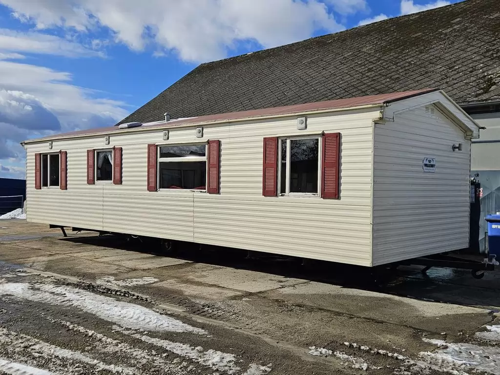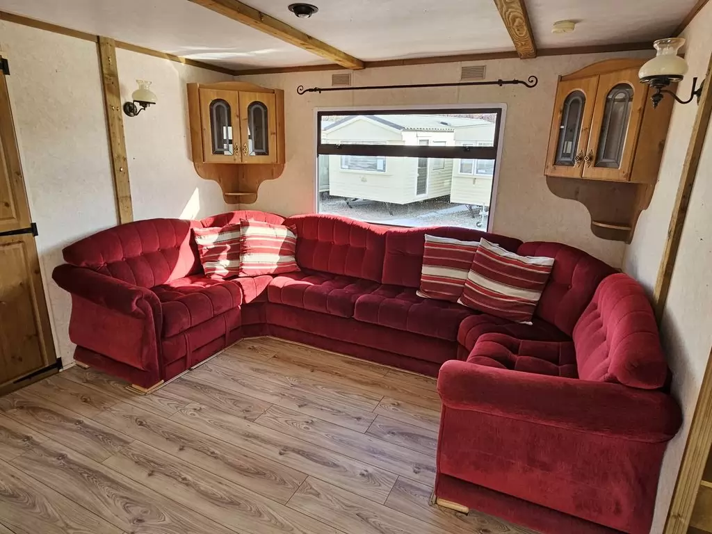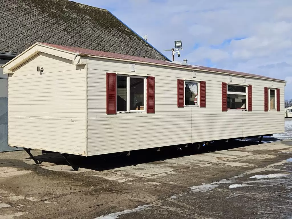 Extra wide, BEAUTIFUL, equipped mobile home 11.3 x 3.7m with two entrances with bay windows, GABLE ROOF, DOUBLE (insulating) WINDOWS AND DOORS - dithermy. CENTRALLY (in the middle) - living room (sofa bed), space for dining area, U-shaped kitchen, ON THE RIGHT SIDE - spacious bedroom (double bed with storage space) + dressing room, bathroom with shower + toilet, ON THE LEFT SIDE - room (2 beds), toilet with sink. Electric fireplace + electric heaters, gas water heating. Raised ceiling throughout the mobile home!!