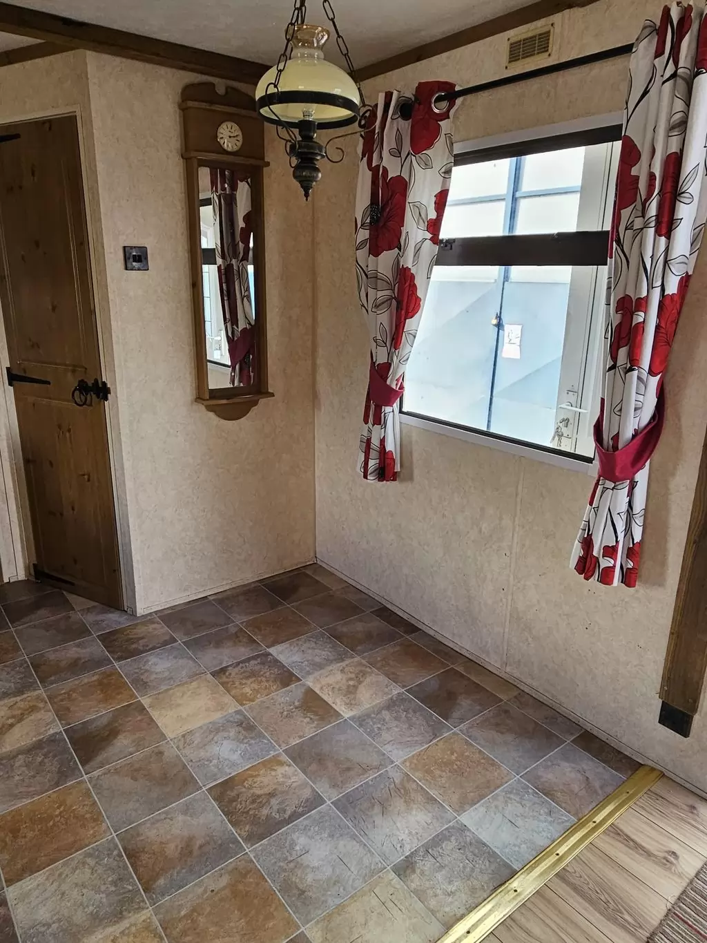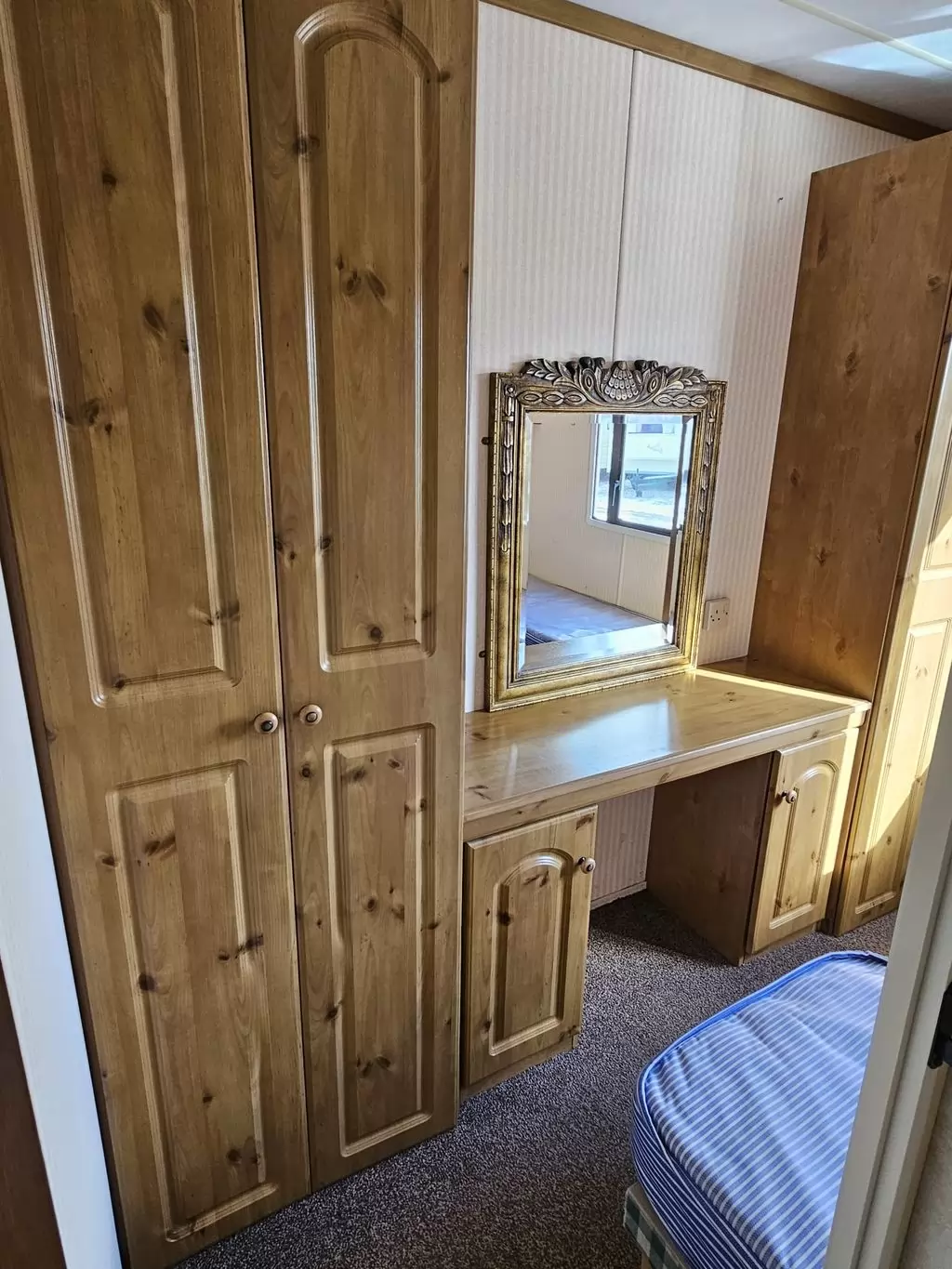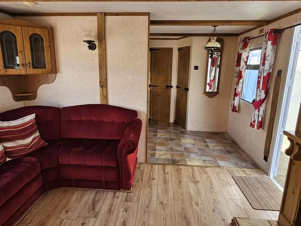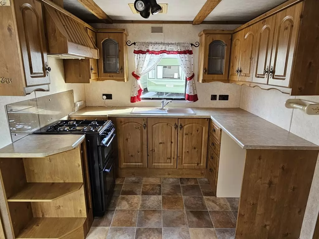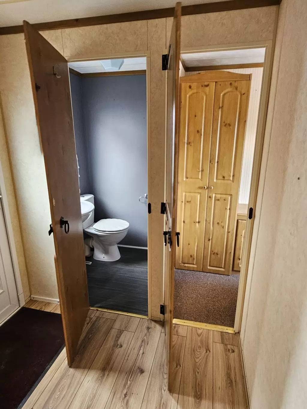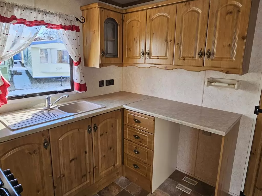 Extra wide, BEAUTIFUL, equipped mobile home 11.3 x 3.7m with two entrances with bay windows, GABLE ROOF, DOUBLE (insulating) WINDOWS AND DOORS - dithermy. CENTRALLY (in the middle) - living room (sofa bed), space for dining area, U-shaped kitchen, ON THE RIGHT SIDE - spacious bedroom (double bed with storage space) + dressing room, bathroom with shower + toilet, ON THE LEFT SIDE - room (2 beds), toilet with sink. Electric fireplace + electric heaters, gas water heating. Raised ceiling throughout the mobile home!!