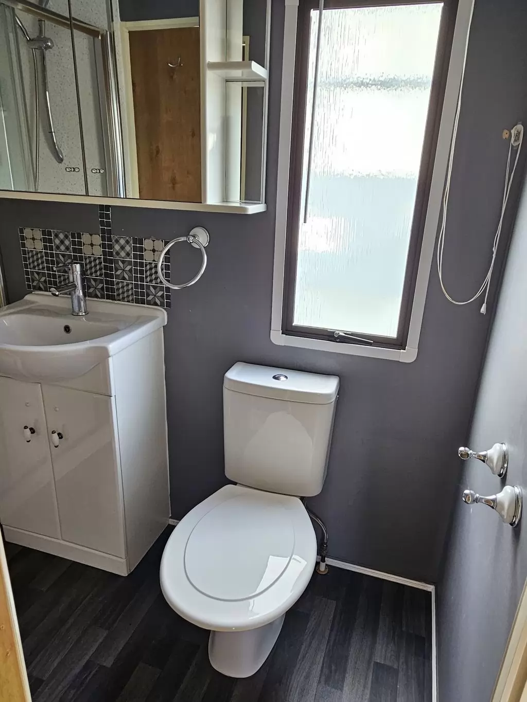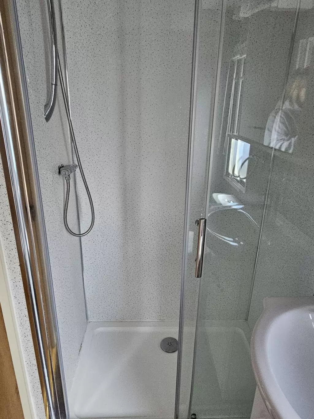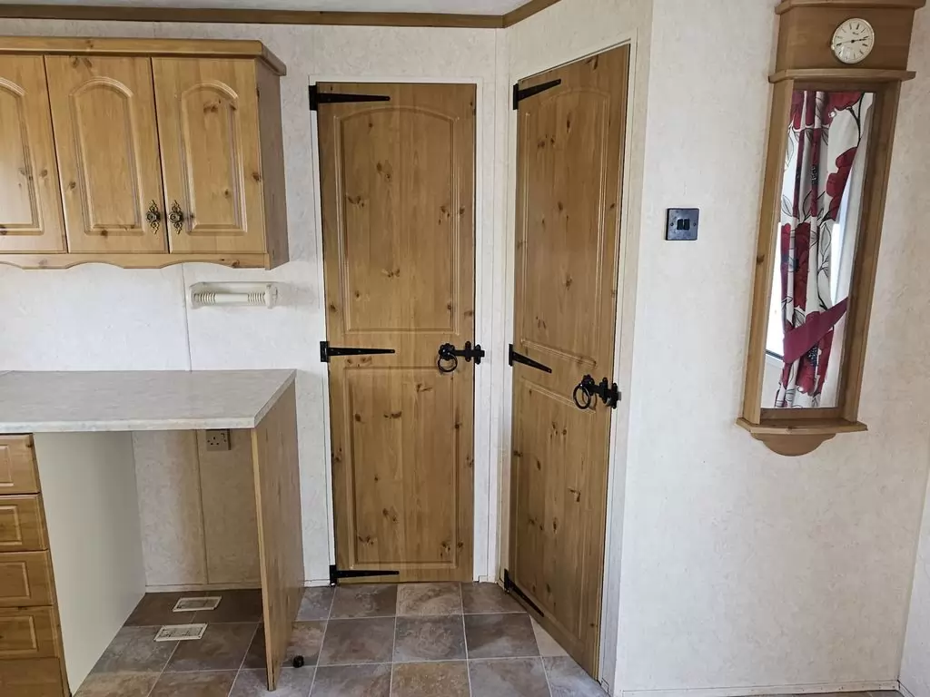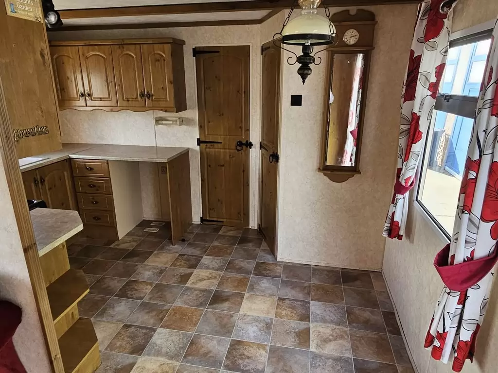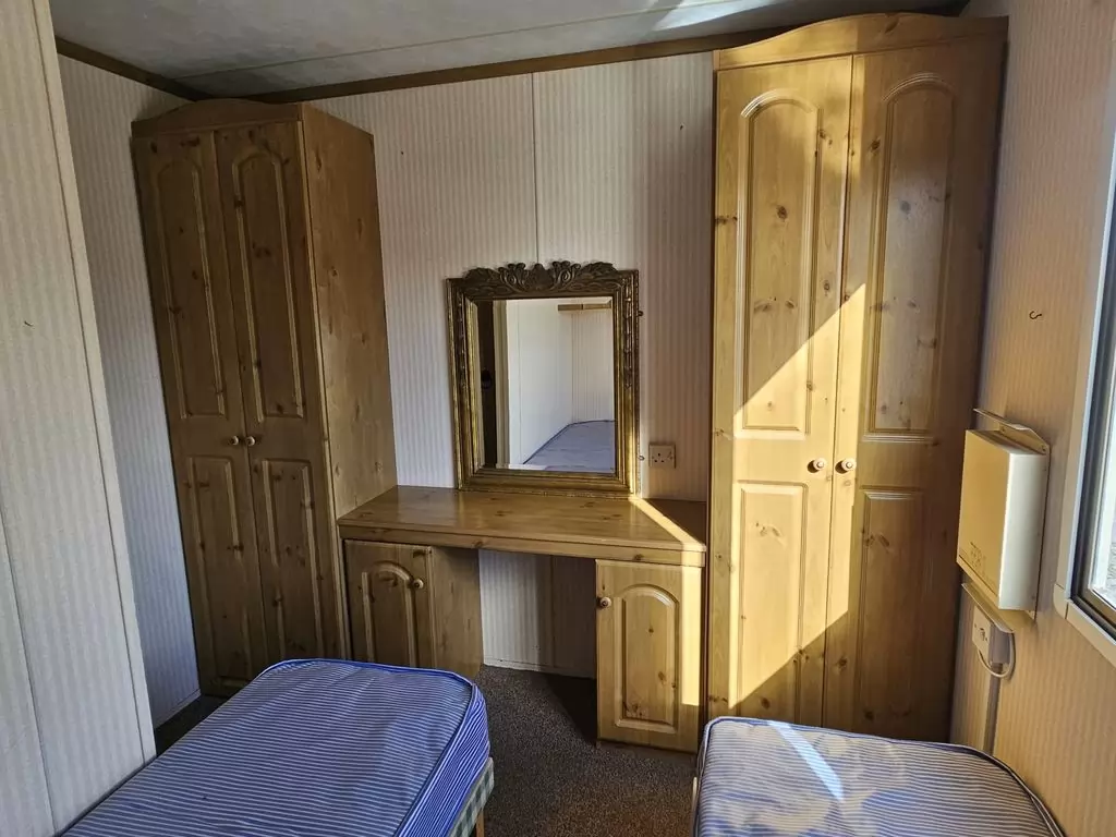 Extra wide, BEAUTIFUL, equipped mobile home 11.3 x 3.7m with two entrances with bay windows, GABLE ROOF, DOUBLE (insulating) WINDOWS AND DOORS - dithermy. CENTRALLY (in the middle) - living room (sofa bed), space for dining area, U-shaped kitchen, ON THE RIGHT SIDE - spacious bedroom (double bed with storage space) + dressing room, bathroom with shower + toilet, ON THE LEFT SIDE - room (2 beds), toilet with sink. Electric fireplace + electric heaters, gas water heating. Raised ceiling throughout the mobile home!!