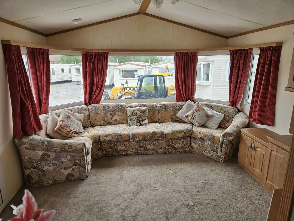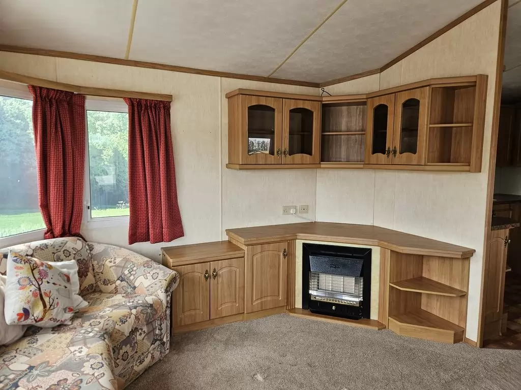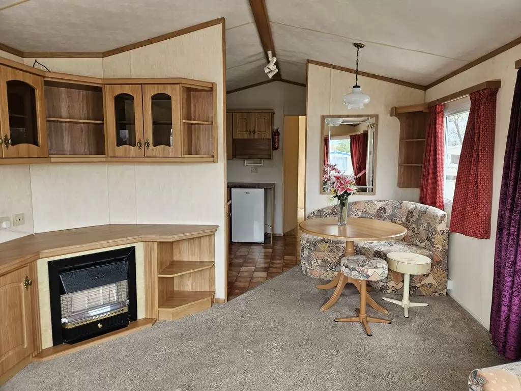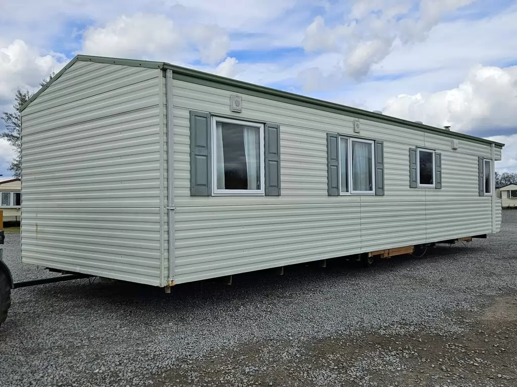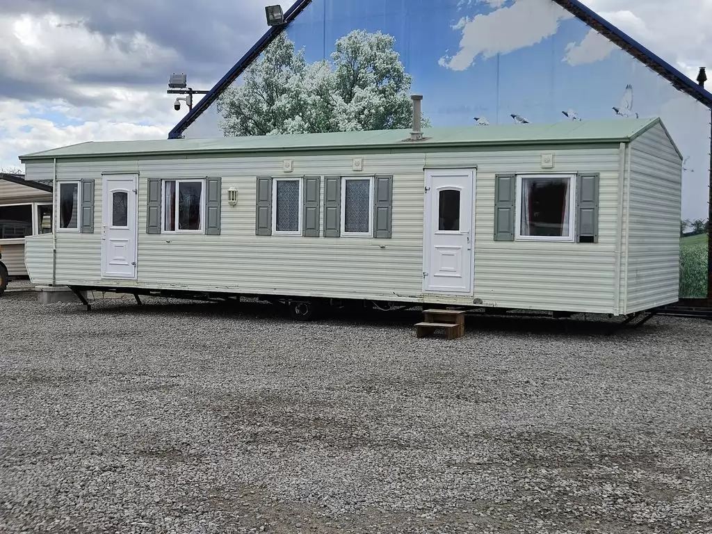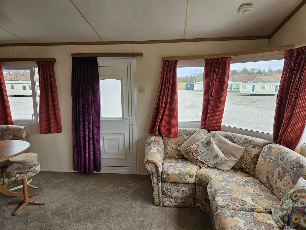 Extra wide, BEAUTIFUL, clean, fully equipped mobile home 11.5 x 3.7m with two entrances, GABLE ROOF, DOUBLE (insulated) WINDOWS AND DOORS - dithermy, IMITATION SHUTTERS. Spacious living room ( sofa bed ), dining area, U-shaped kitchen including appliances, bedroom ( double bed ), room ( bed ), room ( bed ), bathroom with shower, toilet with sink. Gas fireplace + electric direct heater, gas water heating. Raised ceiling throughout the mobile home!!