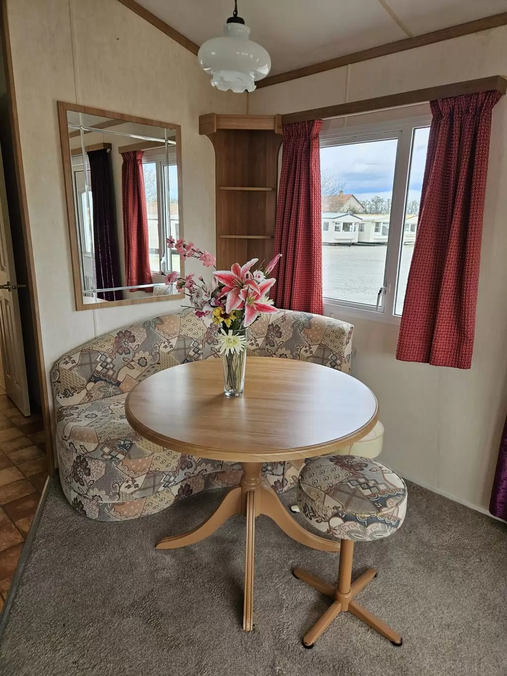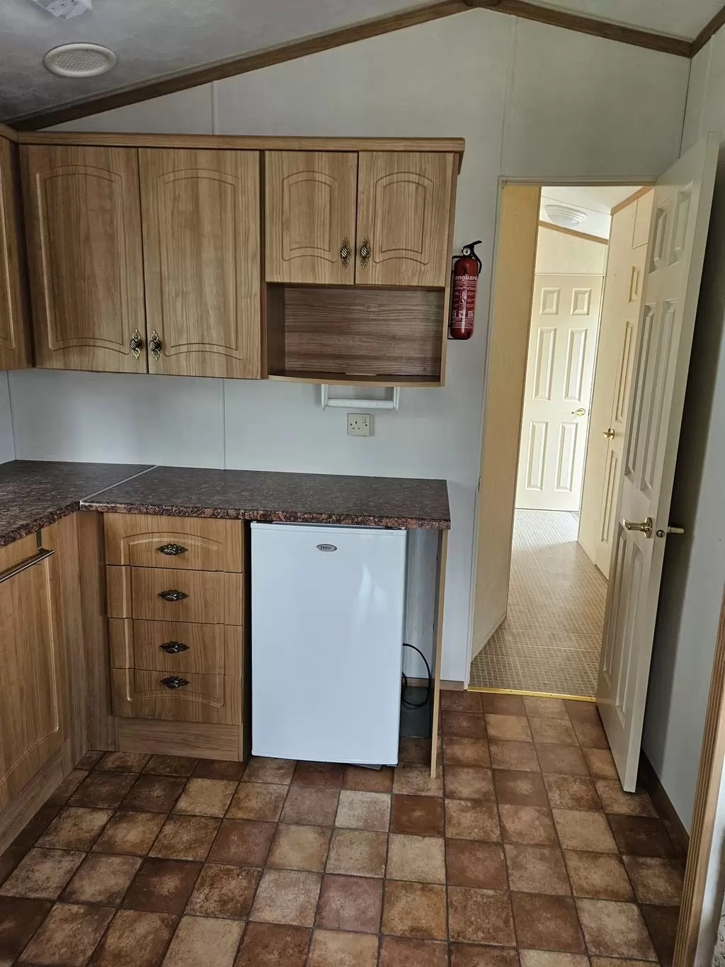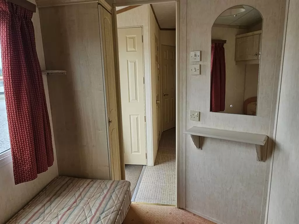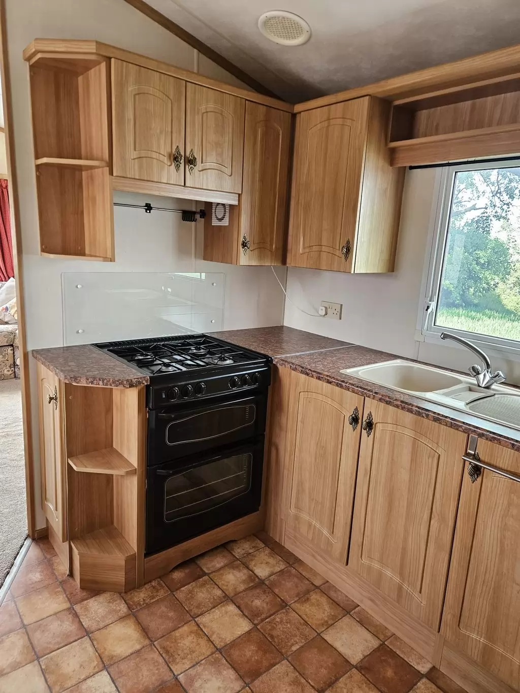 Extra wide, BEAUTIFUL, clean, fully equipped mobile home 11.5 x 3.7m with two entrances, GABLE ROOF, DOUBLE (insulated) WINDOWS AND DOORS - dithermy, IMITATION SHUTTERS. Spacious living room ( sofa bed ), dining area, U-shaped kitchen including appliances, bedroom ( double bed ), room ( bed ), room ( bed ), bathroom with shower, toilet with sink. Gas fireplace + electric direct heater, gas water heating. Raised ceiling throughout the mobile home!!