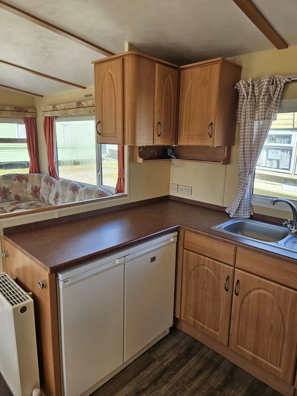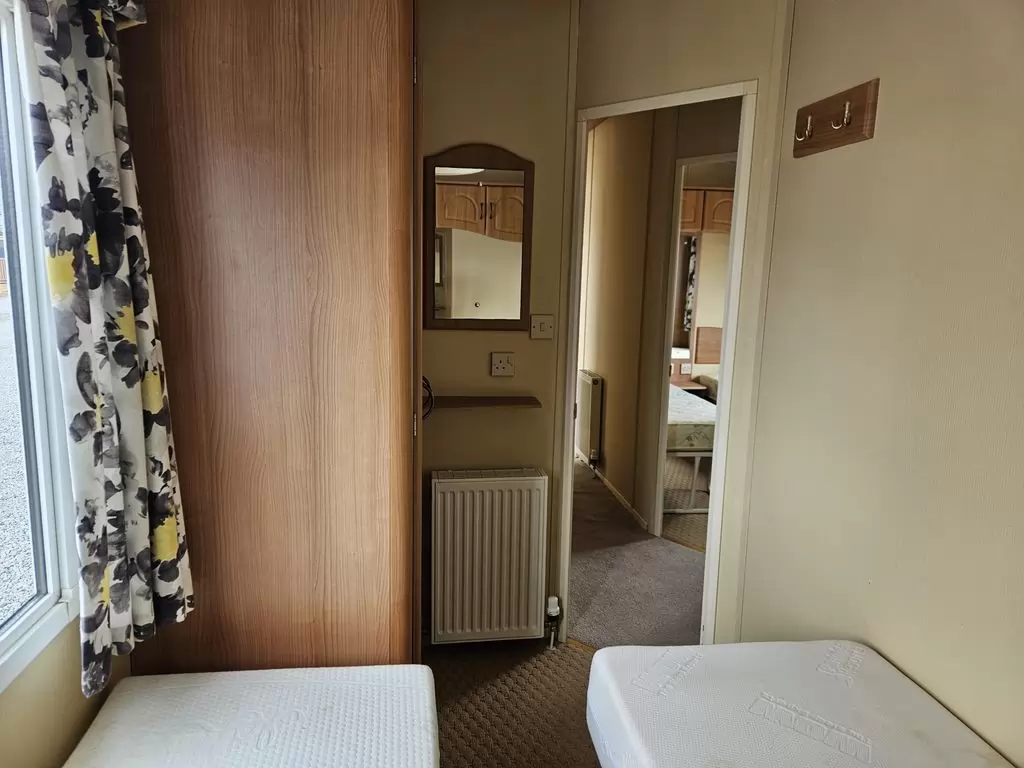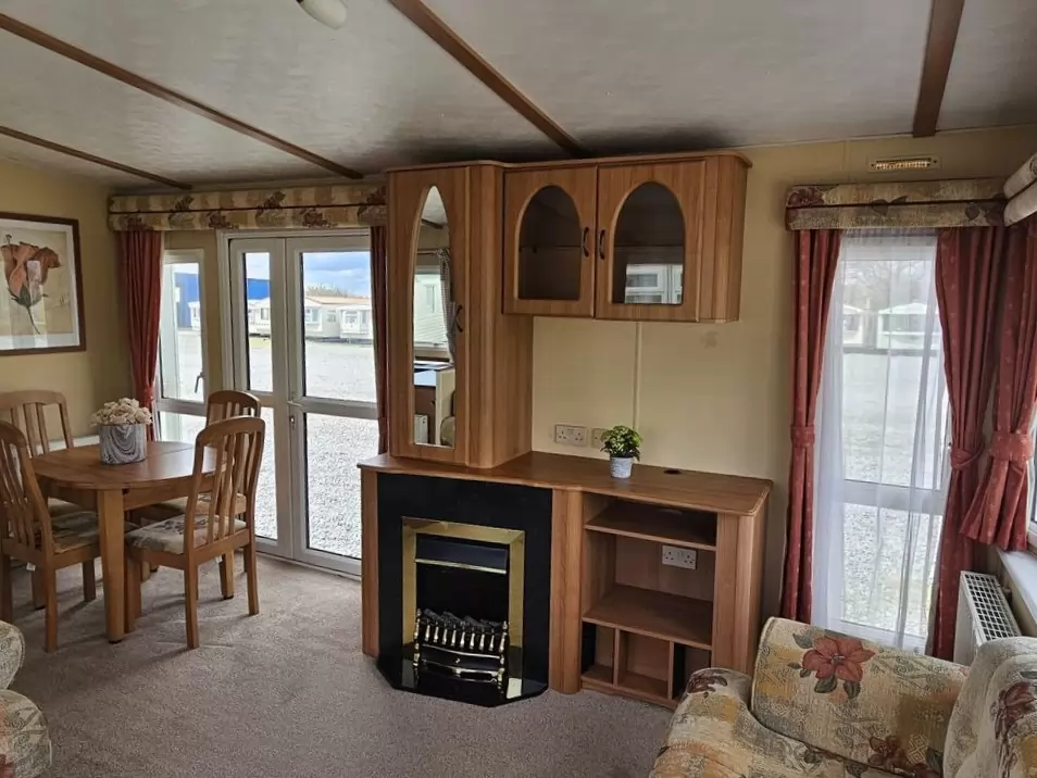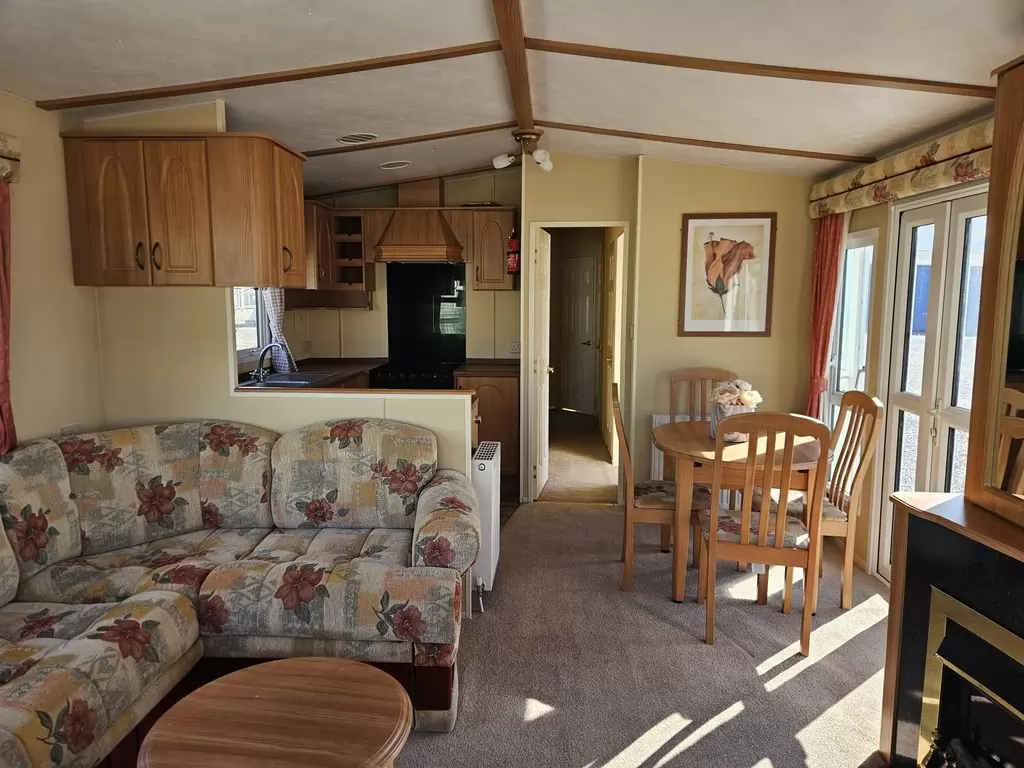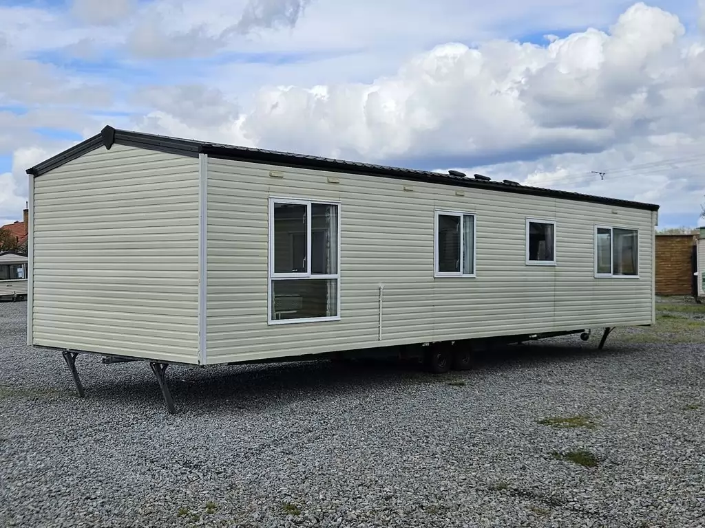 Extra wide, BEAUTIFUL, clean, fully equipped mobile home 11.6 x 3.7m with two entrances, GABLE ROOF, DOUBLE (insulated) WINDOWS AND DOORS - dithermy, CENTRAL HEATING - gas boiler + radiators in all rooms + electric fireplace in the living room. Spacious living room ( sofa bed ), dining area, U-shaped kitchen including appliances, spacious bedroom ( double bed ), room ( 2 beds ), room ( 2 beds ), bathroom with shower, toilet with sink. GALVANIZED FRAME !! Raised ceiling throughout the mobile home !!