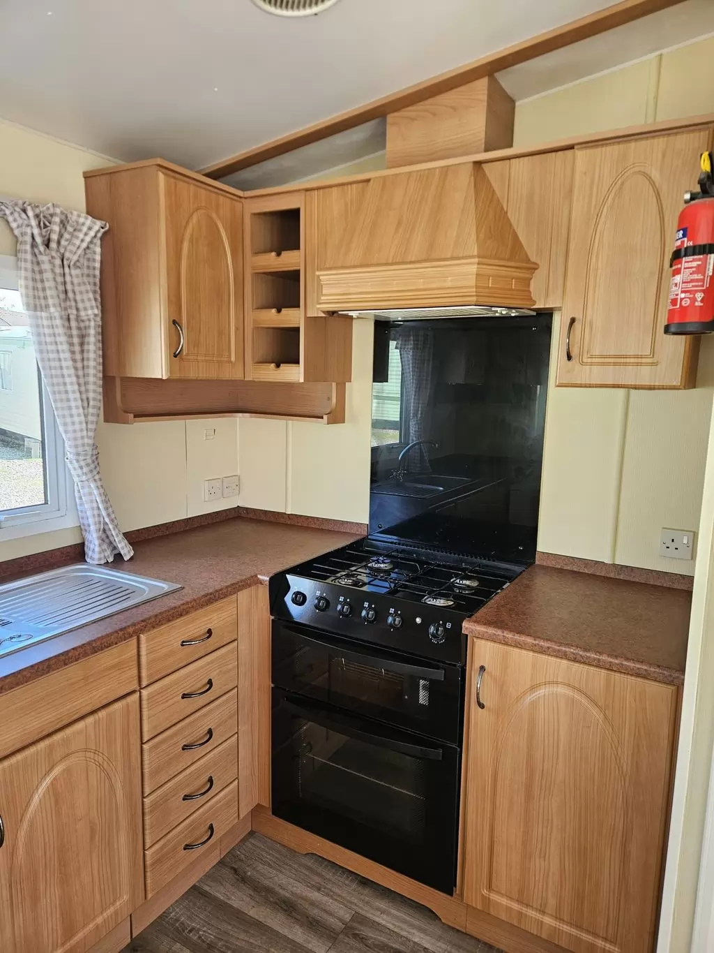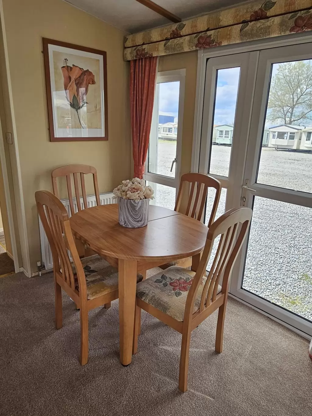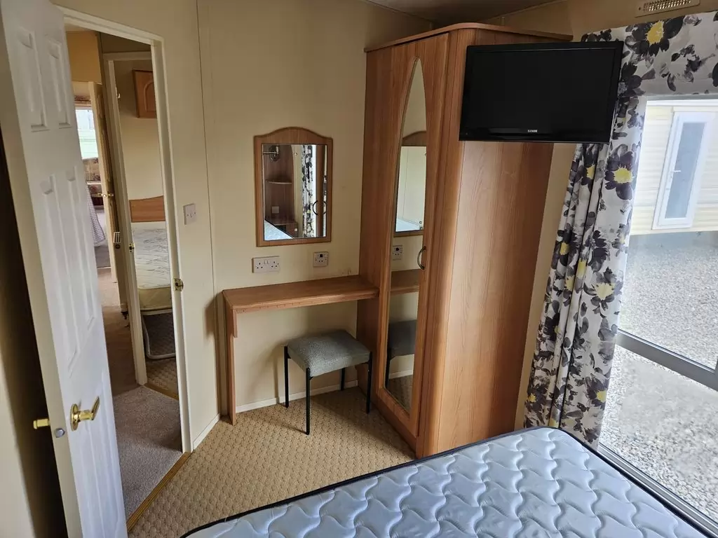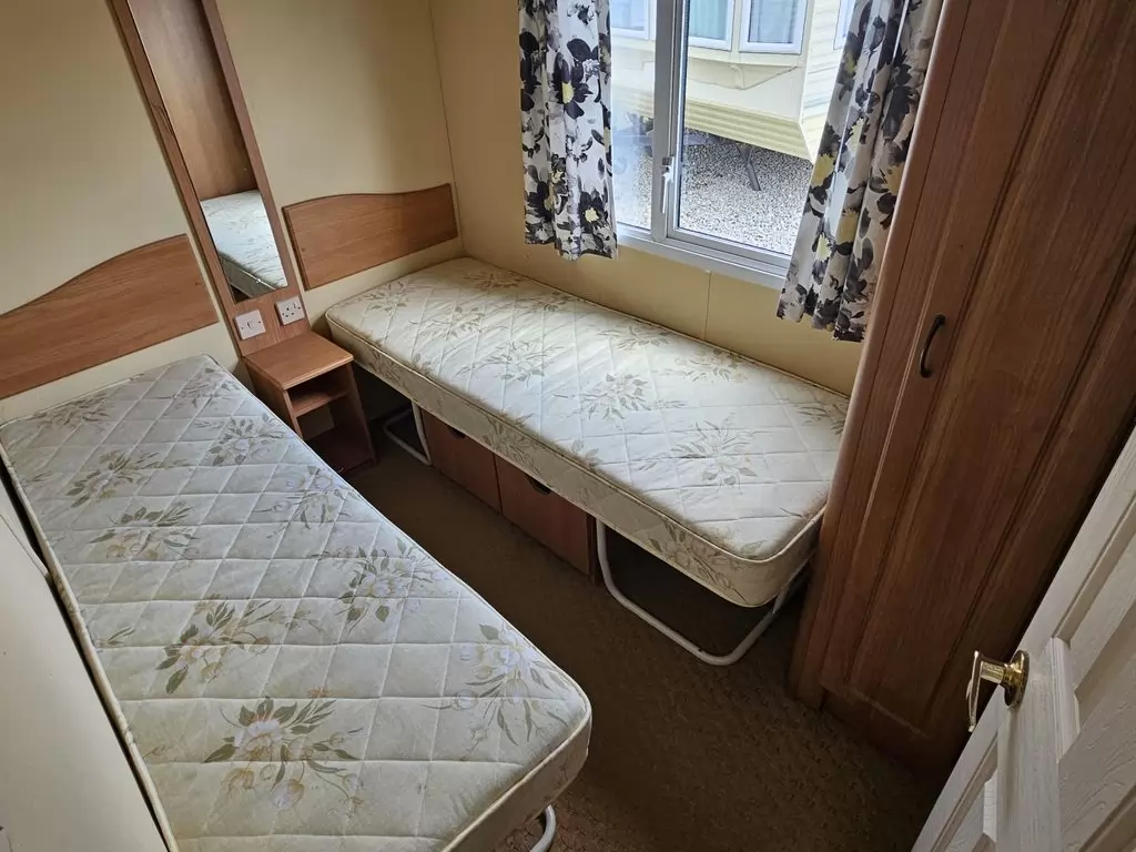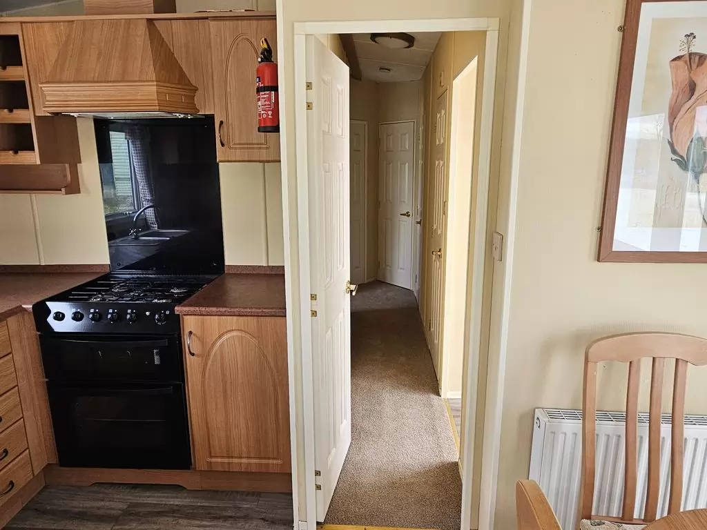 Extra wide, BEAUTIFUL, clean, fully equipped mobile home 11.6 x 3.7m with two entrances, GABLE ROOF, DOUBLE (insulated) WINDOWS AND DOORS - dithermy, CENTRAL HEATING - gas boiler + radiators in all rooms + electric fireplace in the living room. Spacious living room ( sofa bed ), dining area, U-shaped kitchen including appliances, spacious bedroom ( double bed ), room ( 2 beds ), room ( 2 beds ), bathroom with shower, toilet with sink. GALVANIZED FRAME !! Raised ceiling throughout the mobile home !!