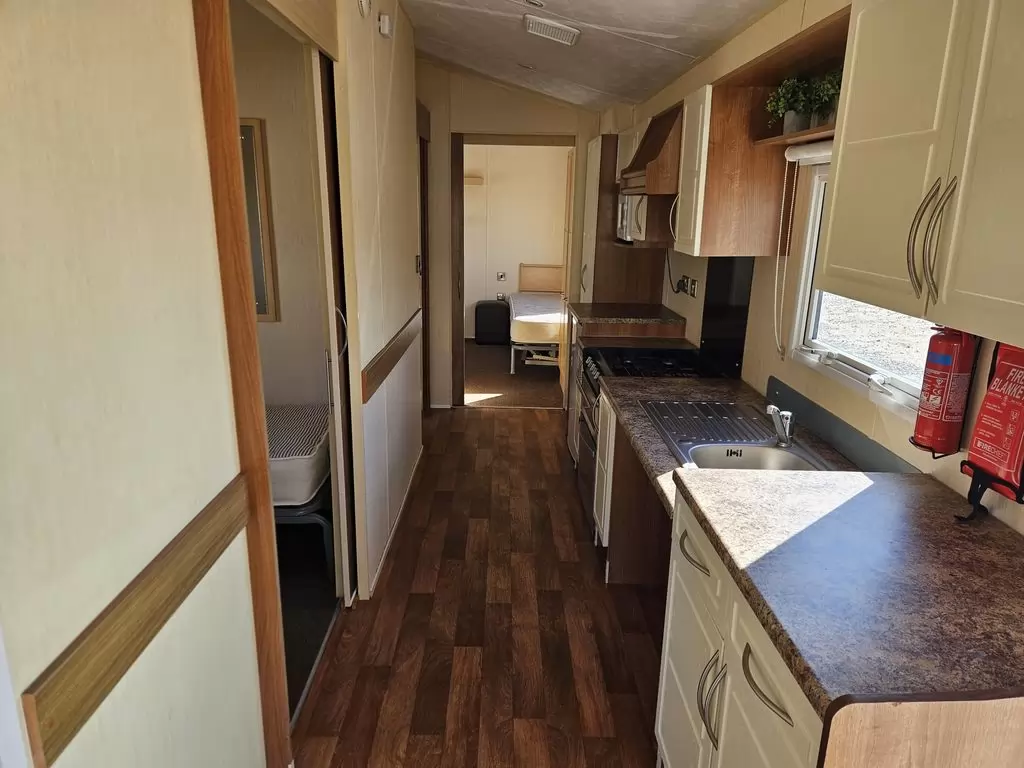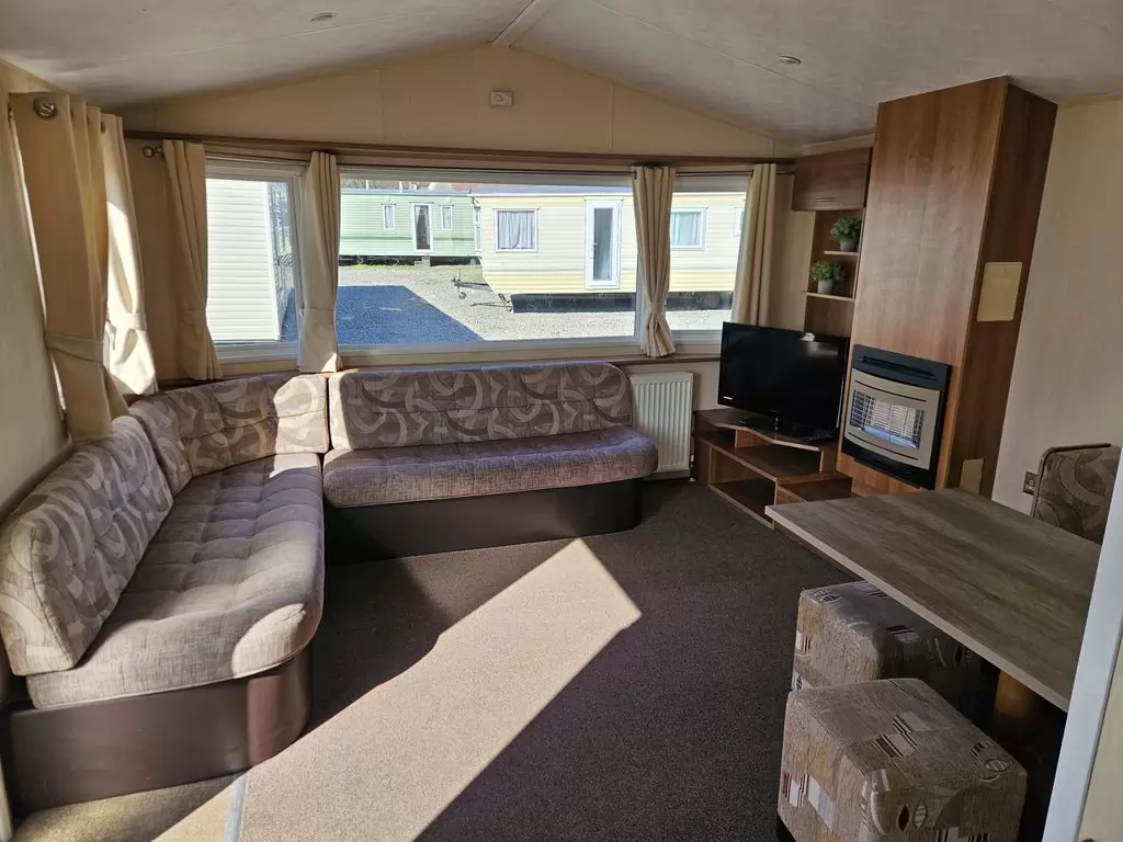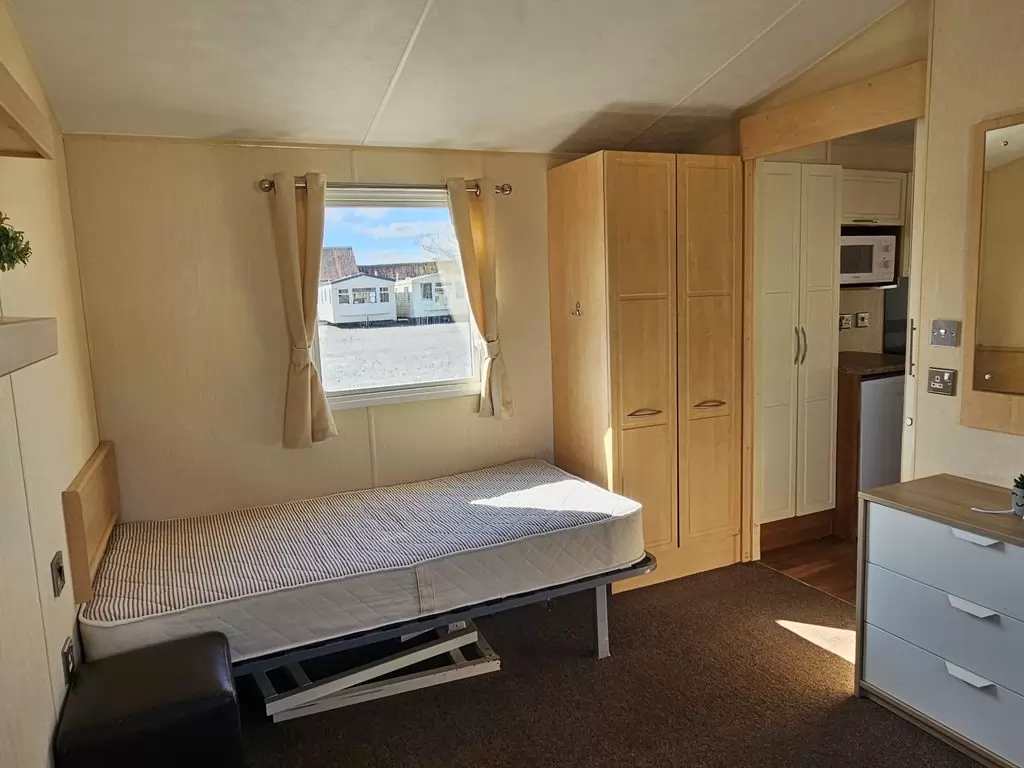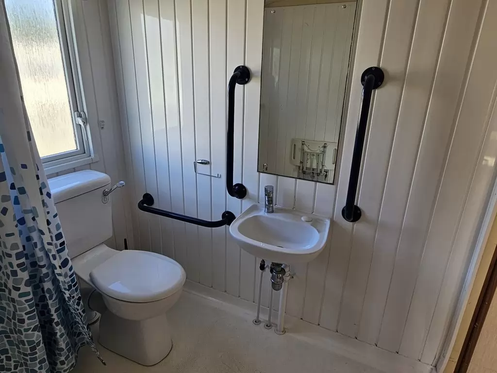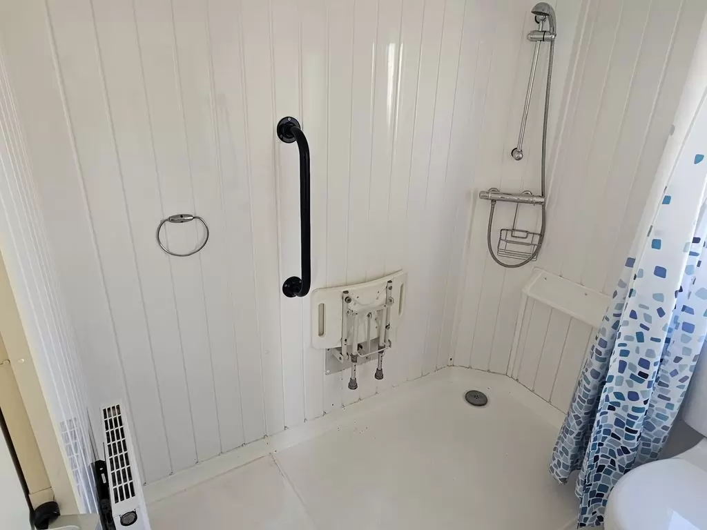 MOBILE HOME FOR WHEELCHAIRMEN !! Extra wide, BEAUTIFUL, VERY SPACIOUS, clean, fully equipped mobile home 10.8 x 3.7m with one entrance, GABLE ROOF, DOUBLE (insulated) WINDOWS AND DOORS - dithermy, CENTRAL HEATING - gas boiler + radiators in all rooms + gas fireplace in the living room. Spacious living room (sofa bed), dining area, kitchen including appliances, bedroom (2 beds), spacious bathroom with shower with seat + toilet with handles. Spacious sliding doors in the mobile home. Raised ceiling throughout the mobile home !!