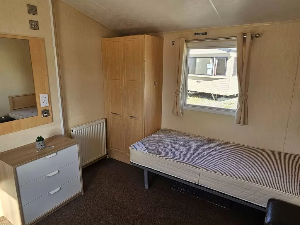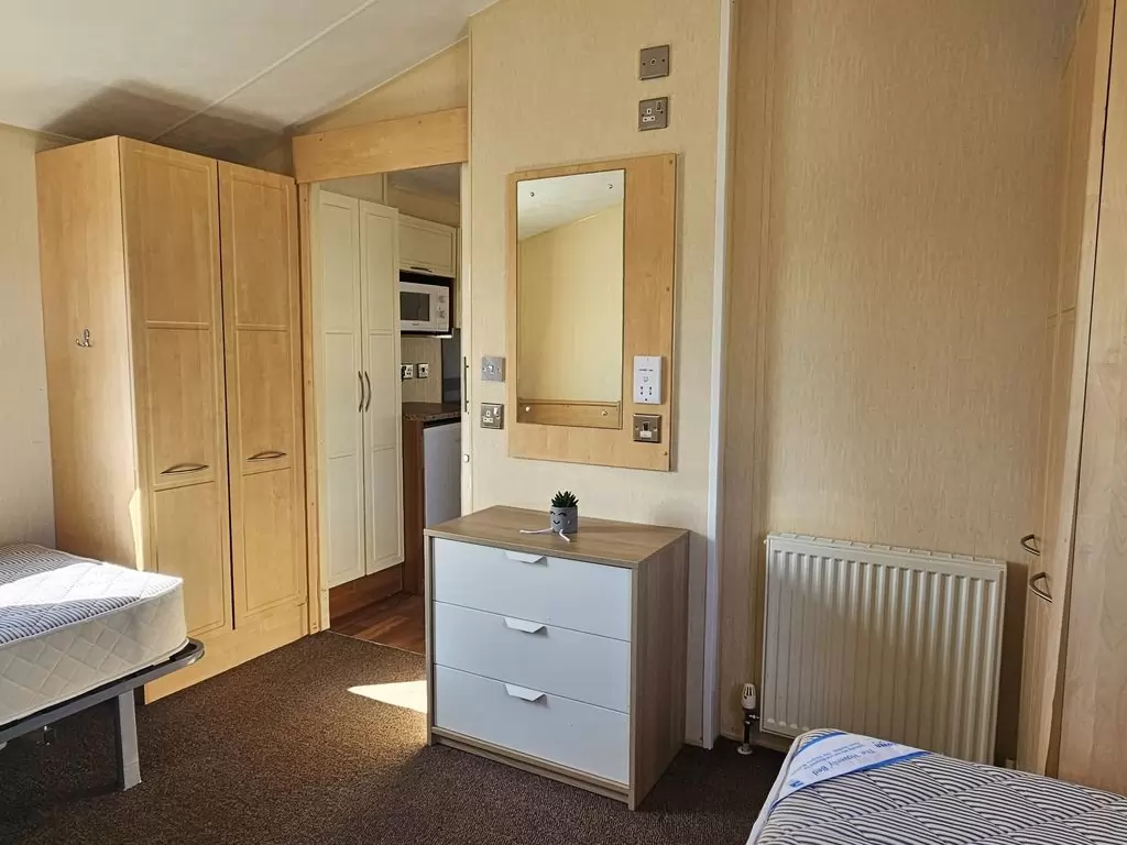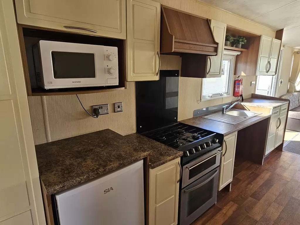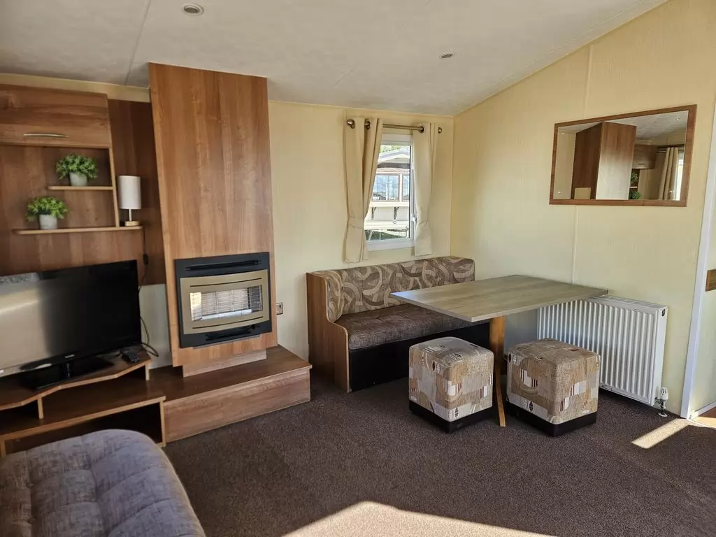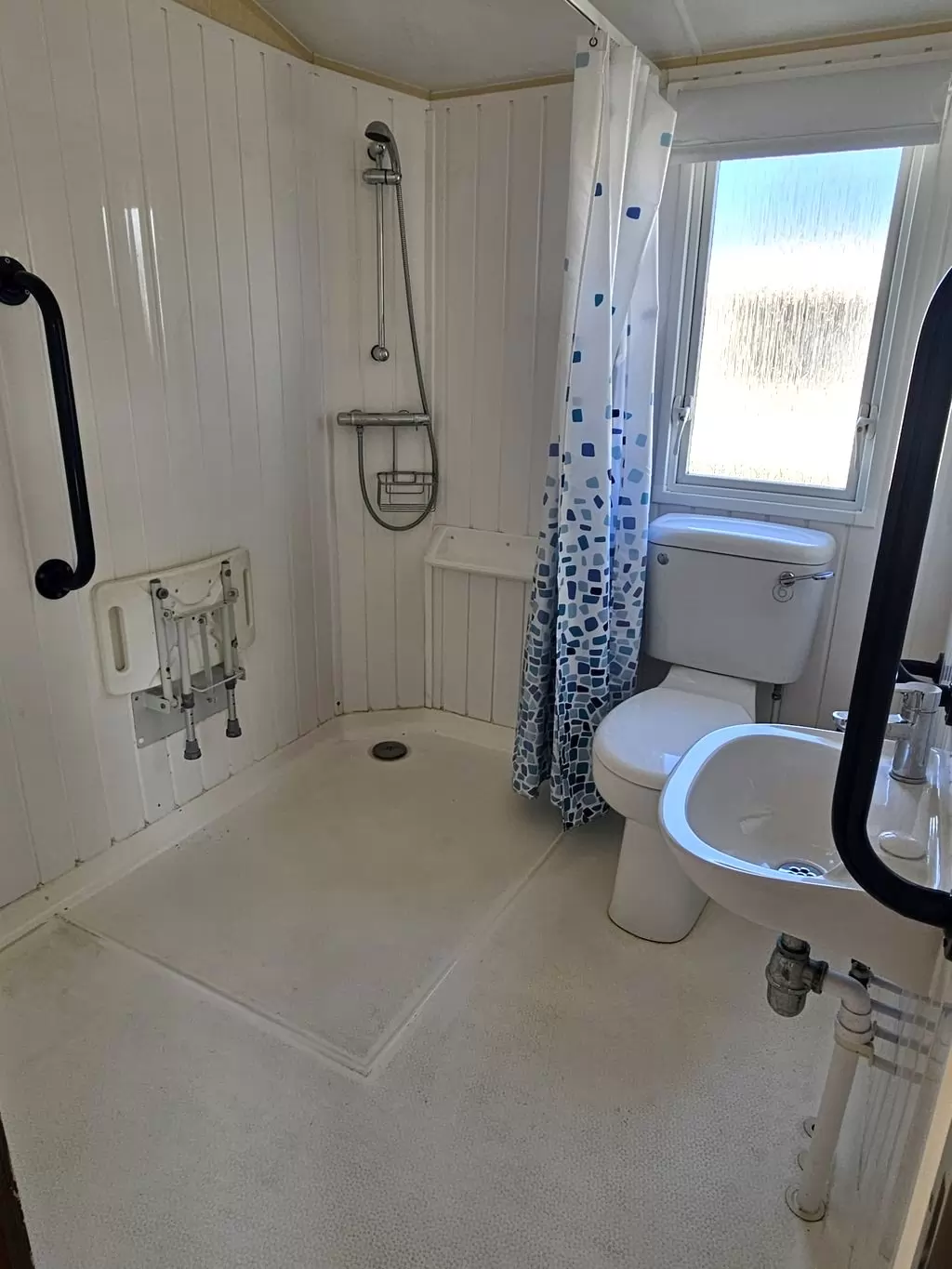 MOBILE HOME FOR WHEELCHAIRMEN !! Extra wide, BEAUTIFUL, VERY SPACIOUS, clean, fully equipped mobile home 10.8 x 3.7m with one entrance, GABLE ROOF, DOUBLE (insulated) WINDOWS AND DOORS - dithermy, CENTRAL HEATING - gas boiler + radiators in all rooms + gas fireplace in the living room. Spacious living room (sofa bed), dining area, kitchen including appliances, bedroom (2 beds), spacious bathroom with shower with seat + toilet with handles. Spacious sliding doors in the mobile home. Raised ceiling throughout the mobile home !!