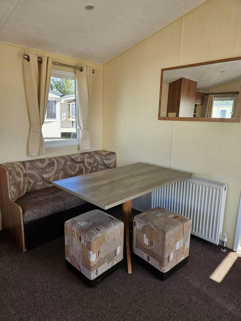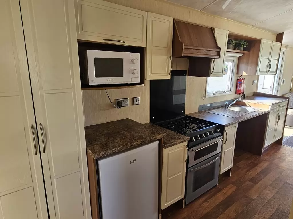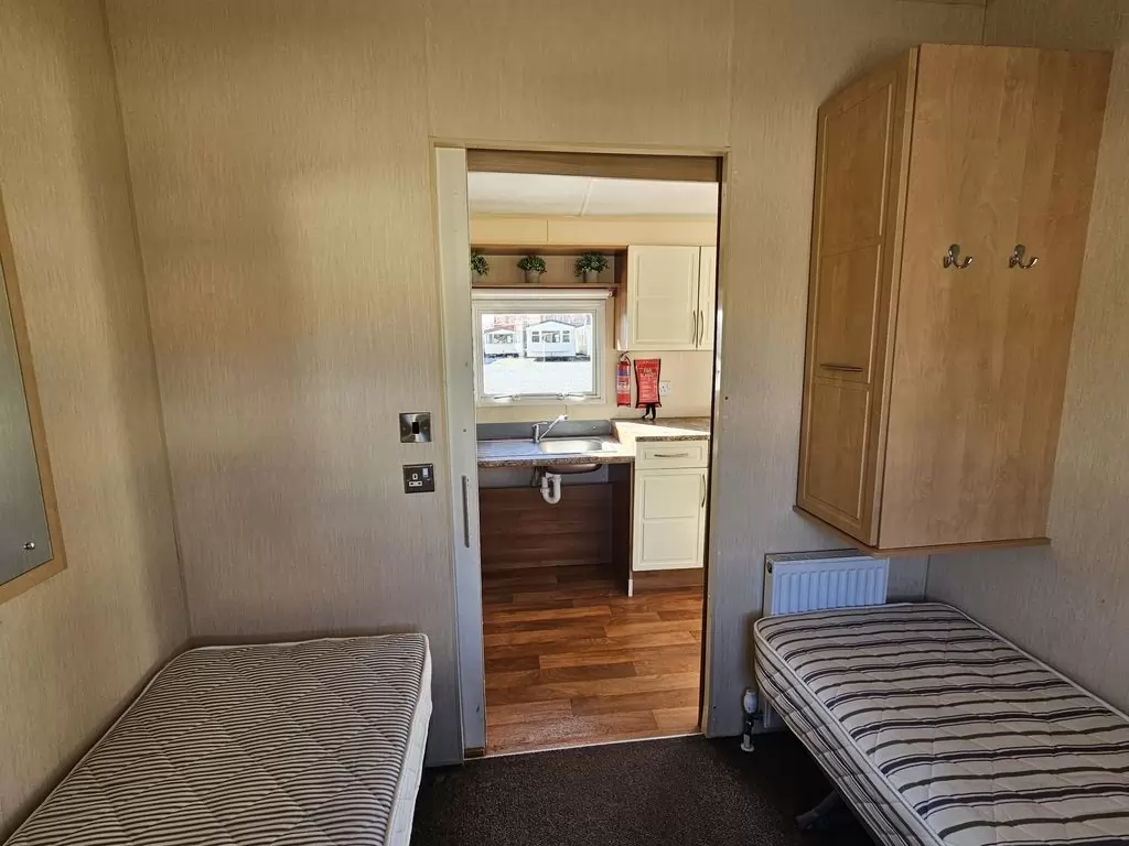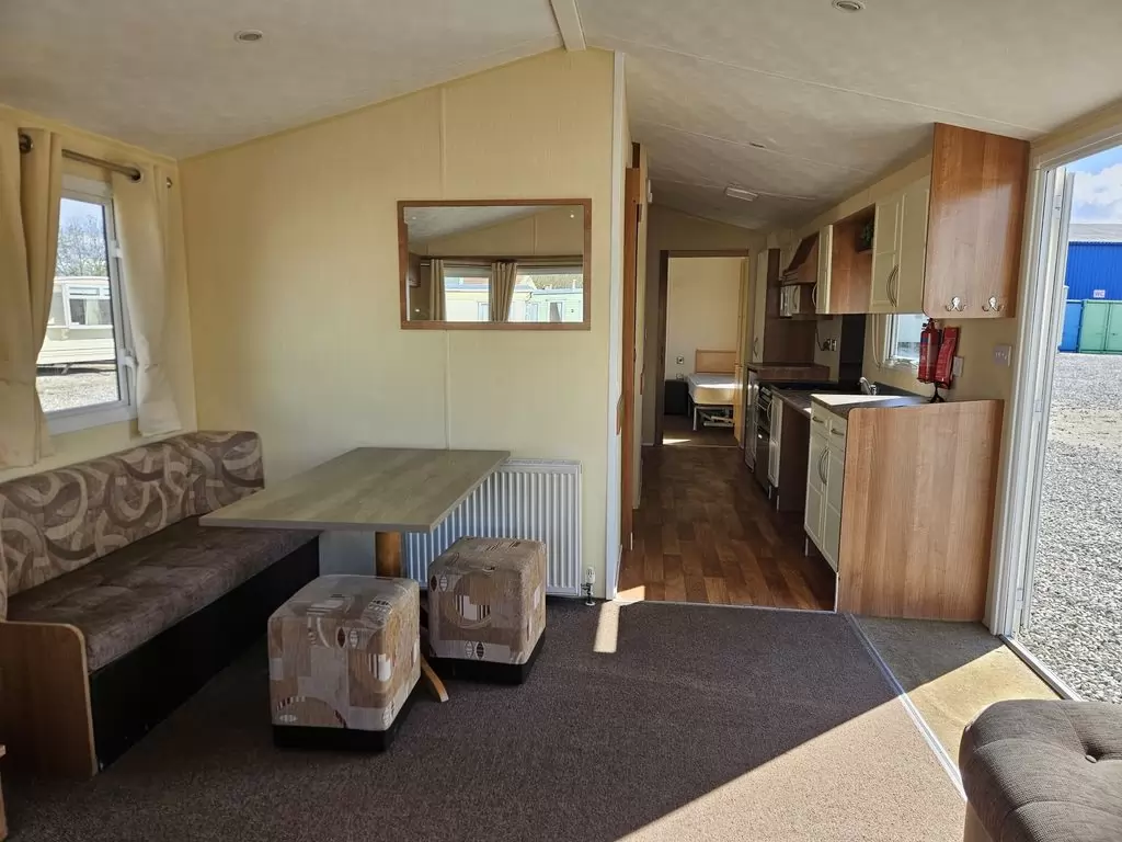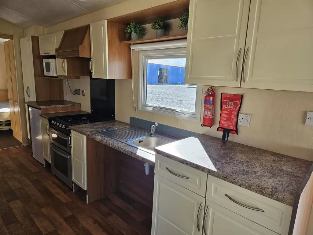 MOBILE HOME FOR WHEELCHAIRMEN !! Extra wide, BEAUTIFUL, VERY SPACIOUS, clean, fully equipped mobile home 10.8 x 3.7m with one entrance, GABLE ROOF, DOUBLE (insulated) WINDOWS AND DOORS - dithermy, CENTRAL HEATING - gas boiler + radiators in all rooms + gas fireplace in the living room. Spacious living room (sofa bed), dining area, kitchen including appliances, bedroom (2 beds), spacious bathroom with shower with seat + toilet with handles. Spacious sliding doors in the mobile home. Raised ceiling throughout the mobile home !!